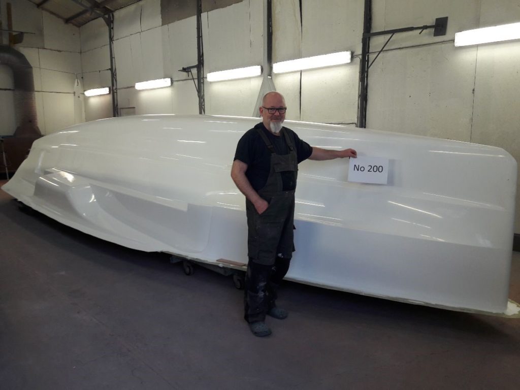 End of January, we reached a mile stone in the Dragonfly production – receiving hull No 200 in the lamination shop.